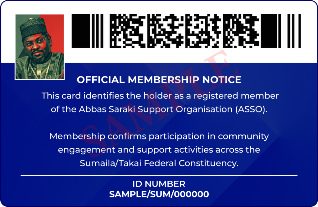 By joining the Abbas Saraki Support Organisation, you gain access to community engagement opportunities, regular updates and bulletins, participation in activities and outreach, and official recognition as a supporter.